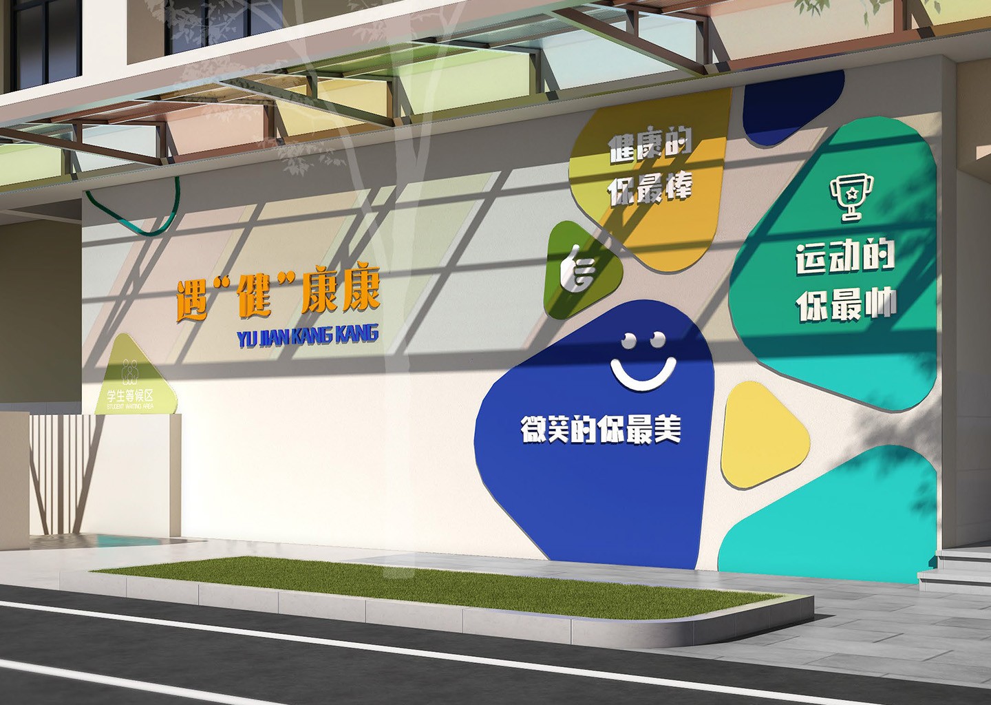 家长等候区。区域内放置等候座椅供家长等候时进行休息,展示家校共育相关内容,呈现健康且精彩纷呈的家校共育成果。