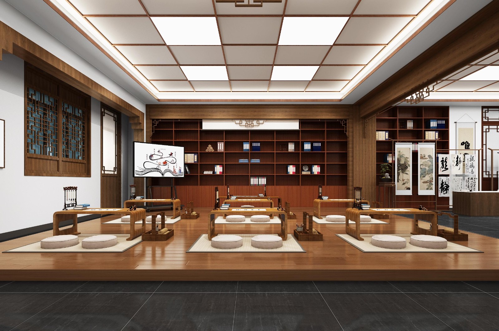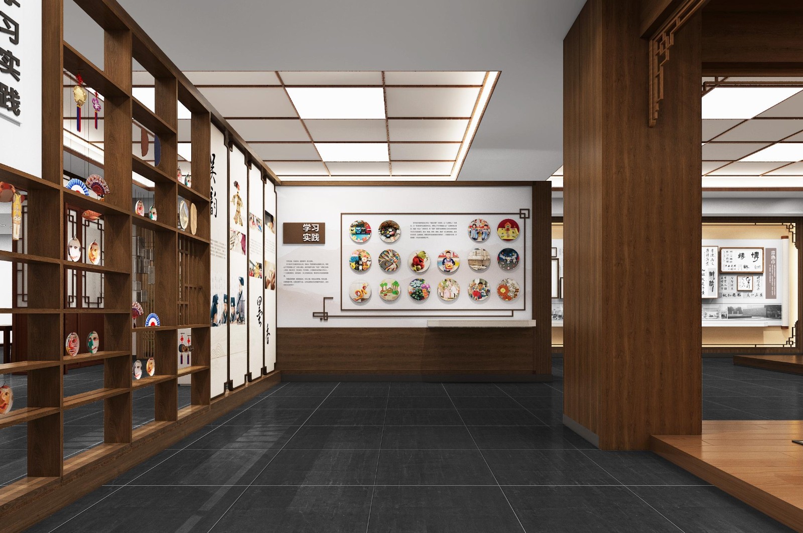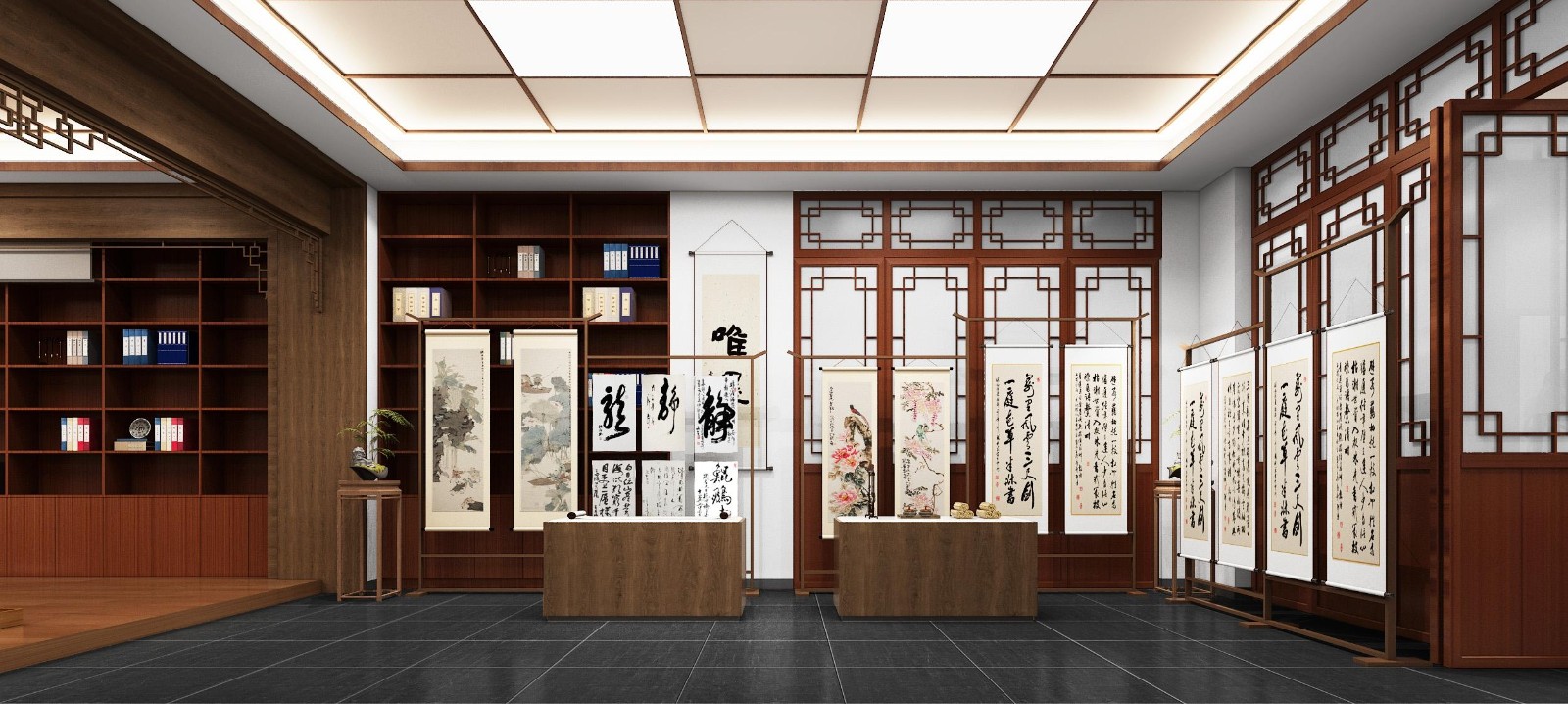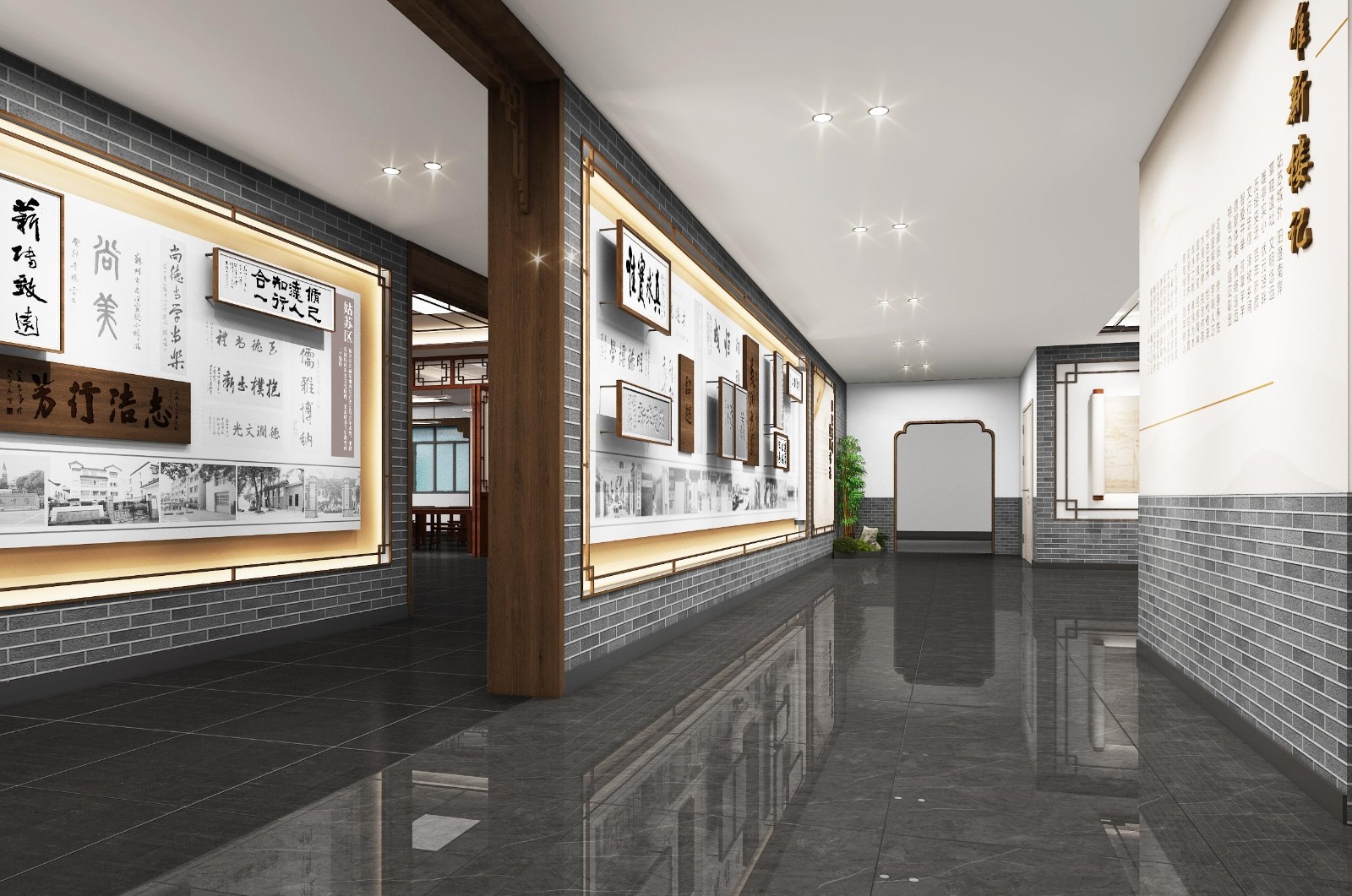 为更好的彰显学校“唯新求实”的特色文化课程,嘉尧设计还为展厅空间打造师生作品展示区、小剧场等创意空间。这里既可以作为学校特色课程成果的展示区域,又可以进行课程互动实践,学生可在专业老师指导下当场挥毫作画书写,更让整个展厅成为课程的第二教室。