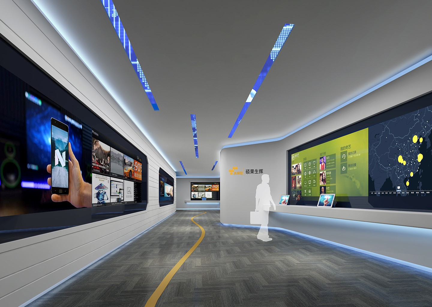 企业展厅是现代企业进行品牌推广和文化传播的重要手段。它利用先进的数字科技,如震撼的视听效果和人机交互技术,通过多媒体技术和互动体验,向参观者全面展示企业形象和产品特色,以直观且吸引人的形式展示企业的核心信息和文化价值观。更重要的是传播企业文化,增强团队凝聚力,并作为与客户沟通的平台。
