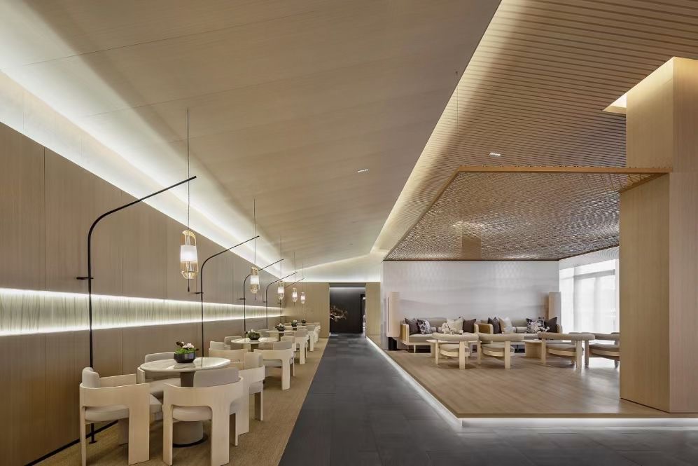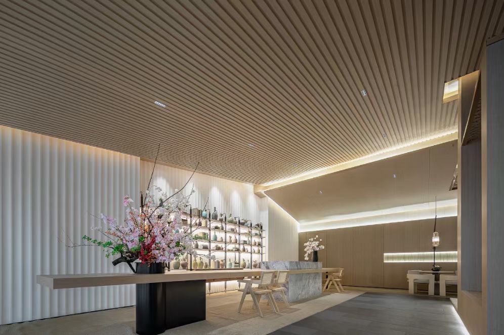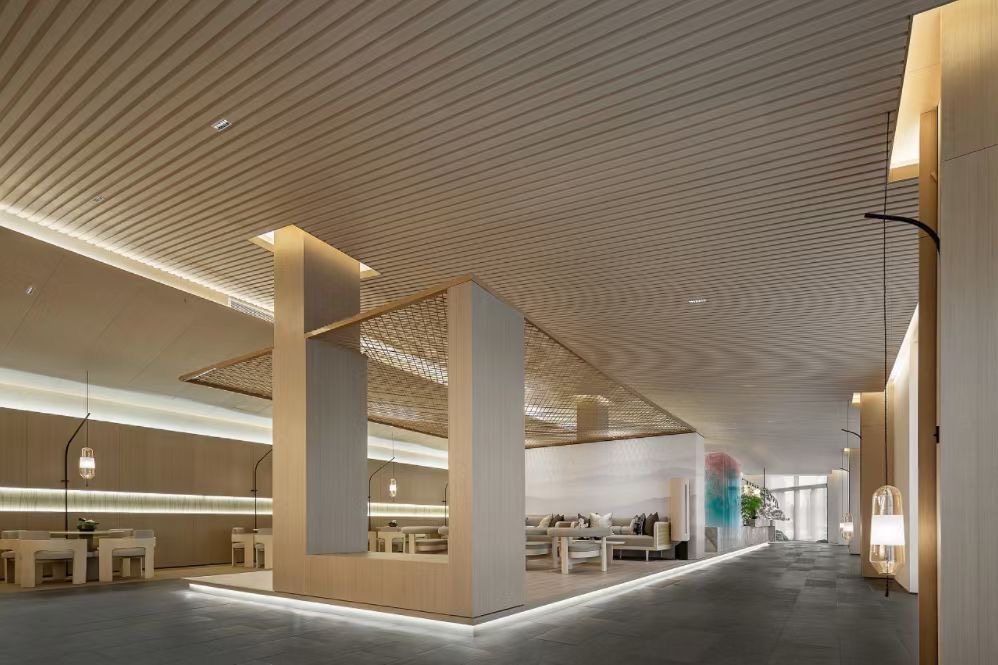 嘉尧的设计师团队认为:木纹的纹理可以呈现出山水、自然元素或抽象的艺术形态,使文化形态更具审美价值,其质感也丰富了触觉体验,更添观者感官世界的联想。