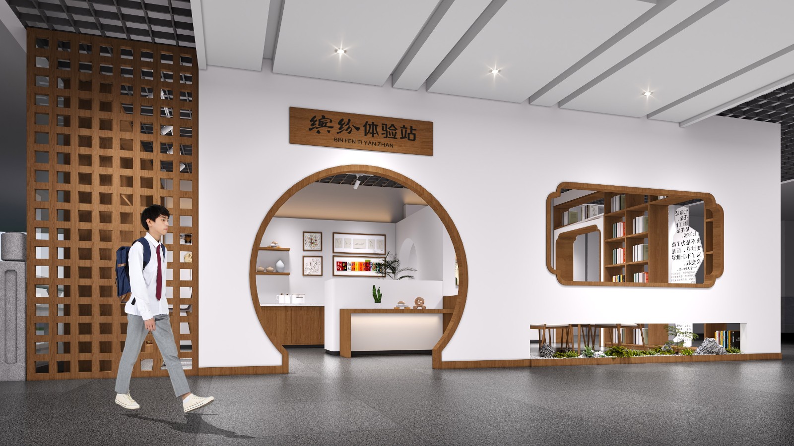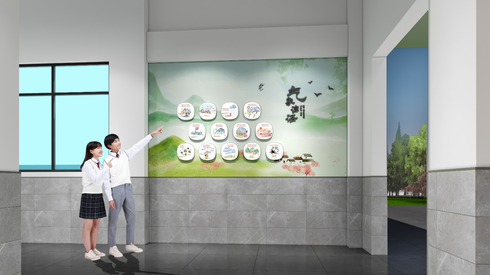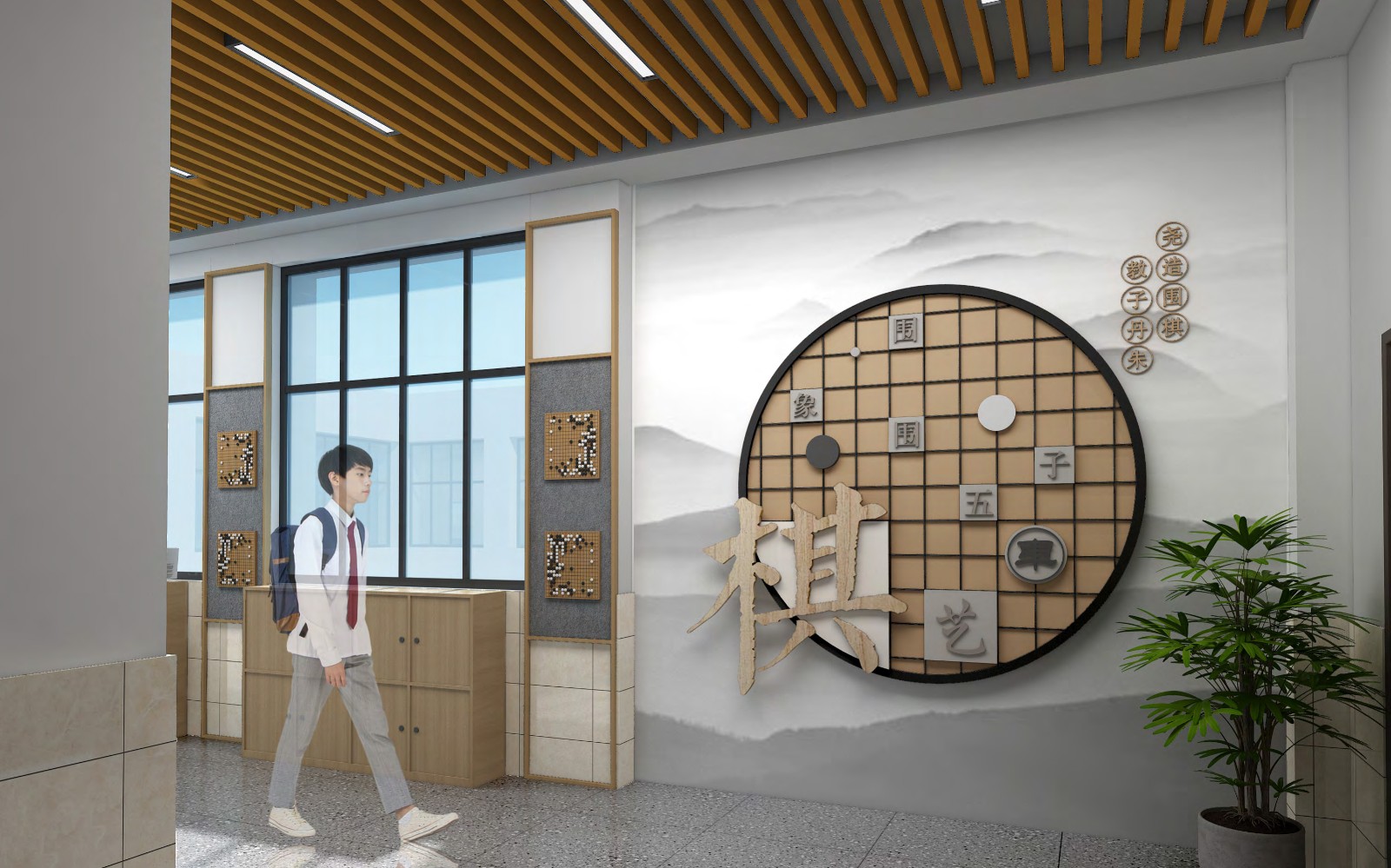 本次校园文化建设延续一期工程的主题与风格,旨在充分、合理的利用校园中的空间,逐步完善、形成系统性的、自成一格的文化氛围。主要涉及校园中的廊道以及功能性教室,嘉尧设计结合本土名人、茶文化、传统文化,将其打造成校园文化中的亮点。