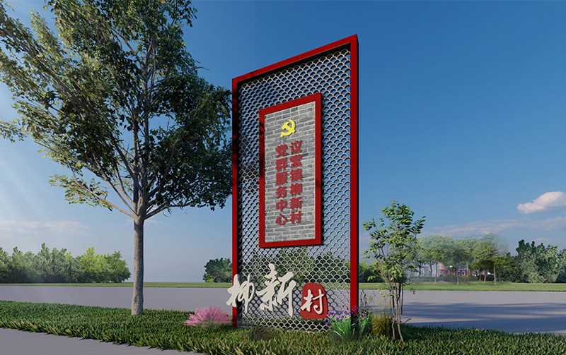 邳州有银杏之乡的美誉,柳新村传承了邳州博大精深的地域文化,提取银杏的形状元素,银杏的形状元素和旗帜的形状元素结合,以代表一方水土的银杏之美表达出美好的寓意,以旗帜之飘扬表达着柳新村致力于打造“党建 为民”新阵地,致力于建设秀美柳新村。