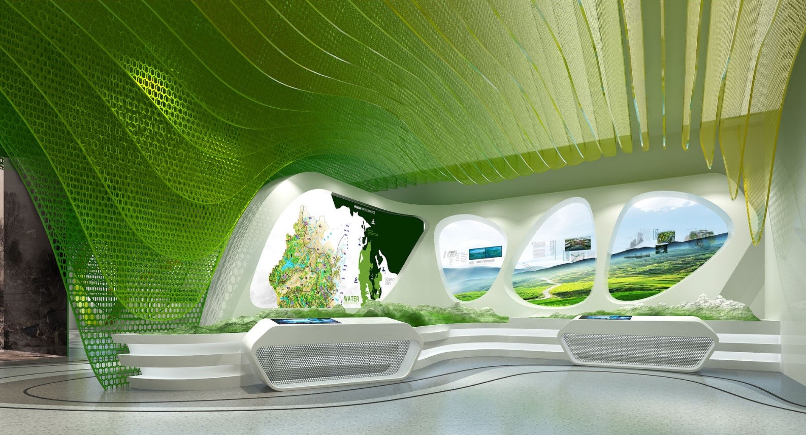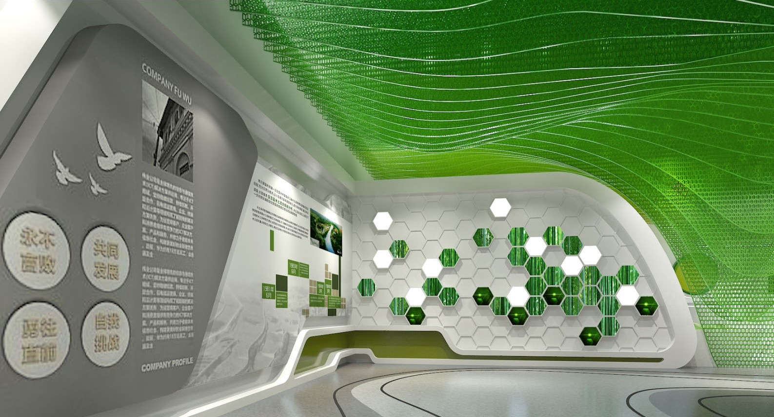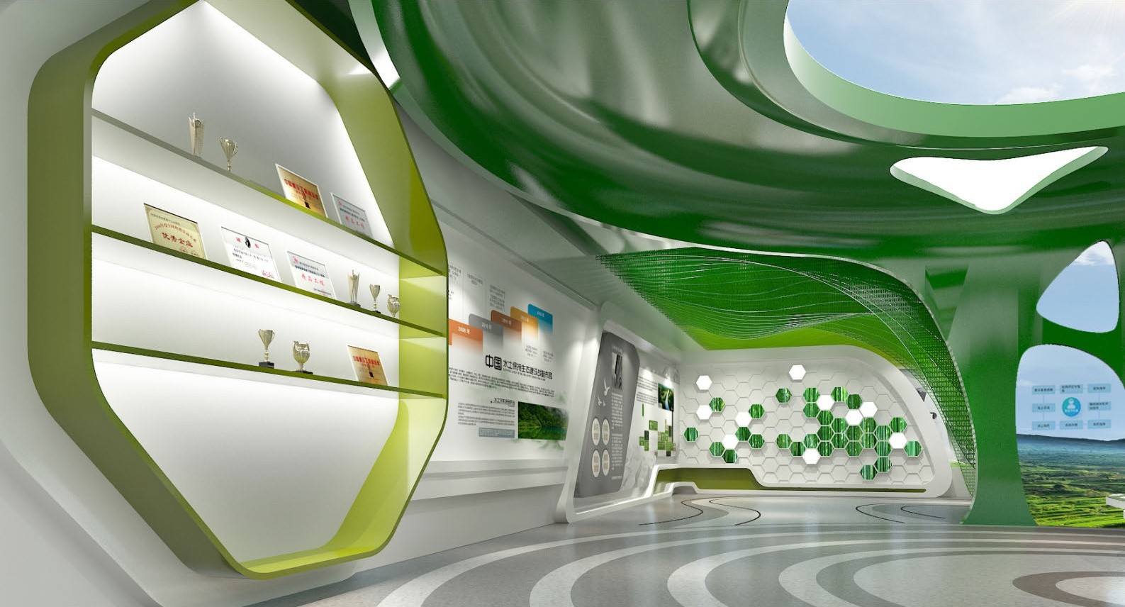 力求在直与曲,规整与变化,节制与浪漫的平衡之间取得极具表现力的展馆形象。