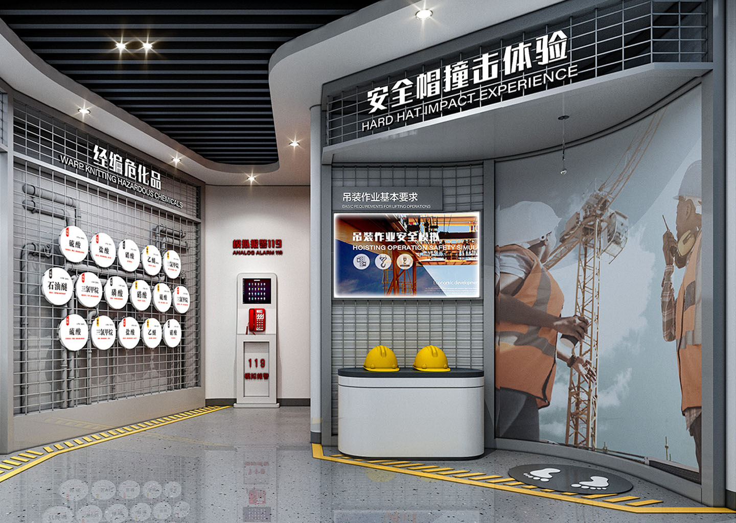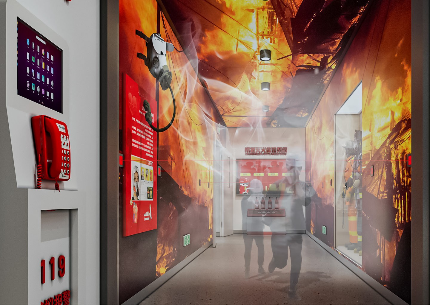 钱江工业园平安体验馆以“钱江智造·共筑平安”为主题,以“防、逃、灭、救、练”五字方针为构架,融入了“科、学、体、考”四项方法,通过智能化VR设备与氛围空间营造,形成了全面创新的沉浸式现代化平安教育阵地,达到多元互动、沉浸体验的效果。
