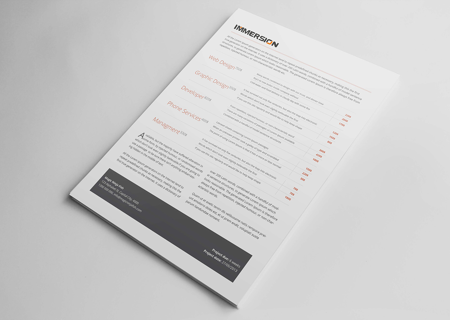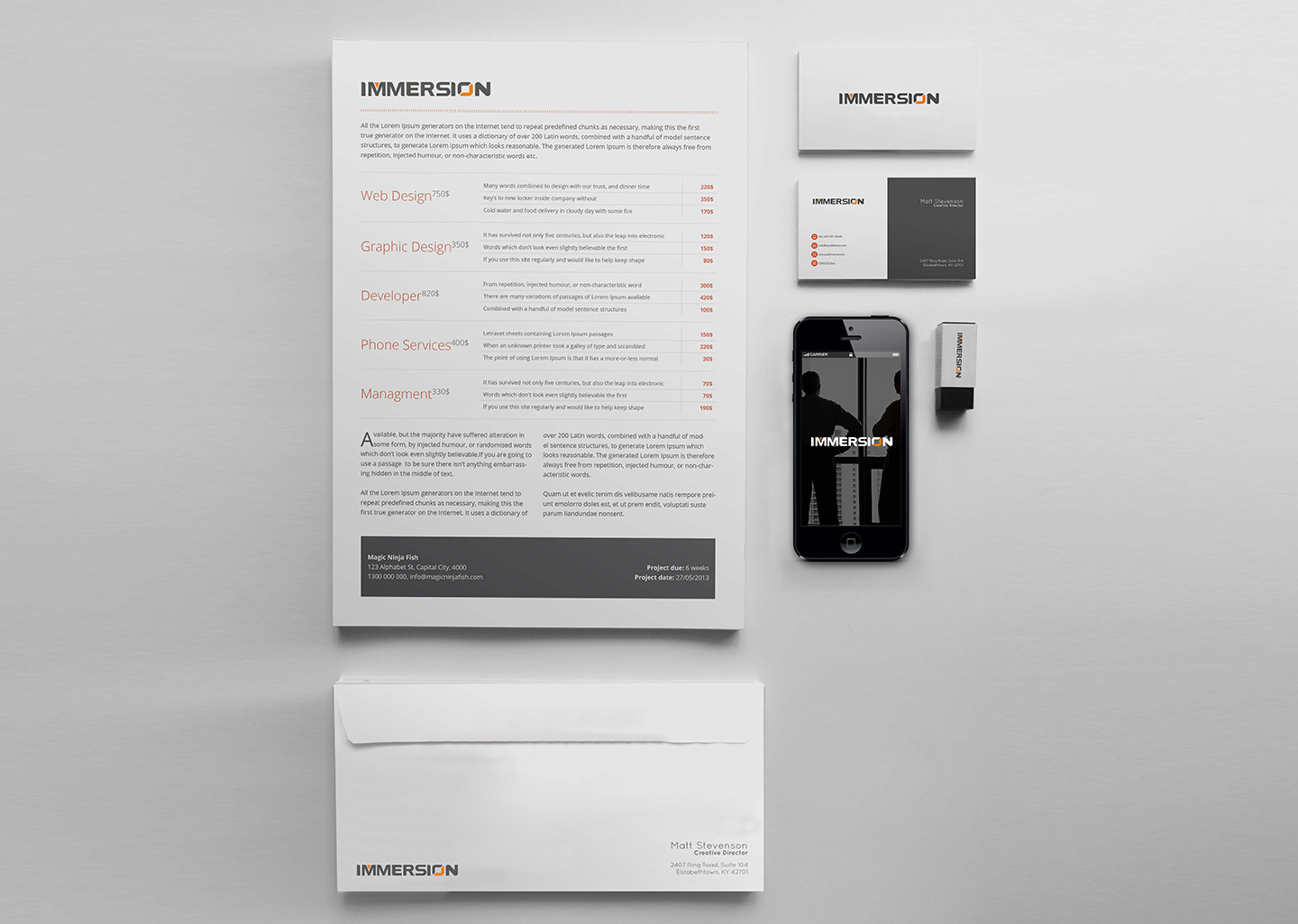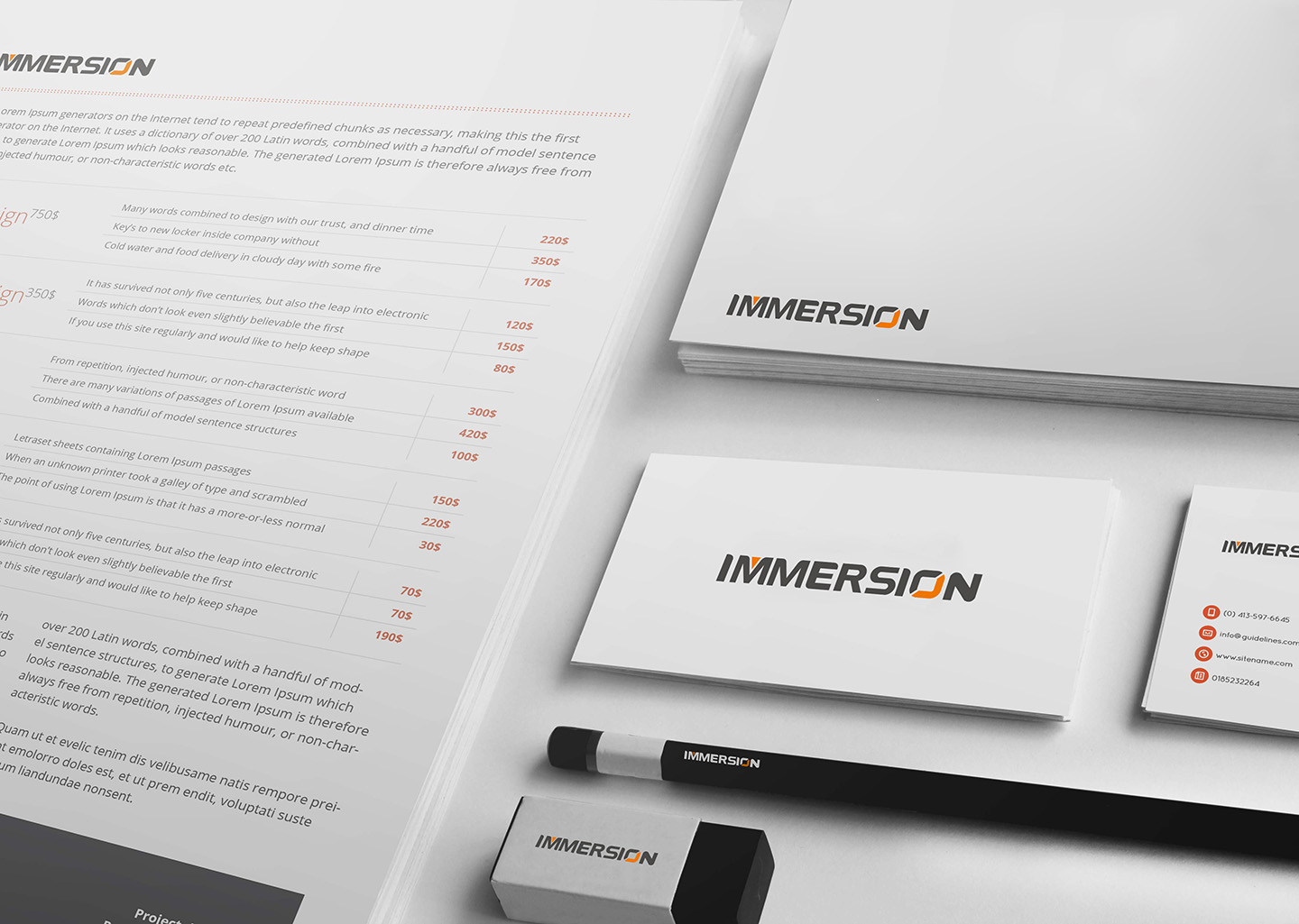 秉持着简练明朗,易懂易传的设计原则,以公司名称IMMERSION为LOGO主体,以黑色为主色调,局部用橙色点缀,阐释着简约美学的魅力,准确传达了品牌信息,让受众看到logo就能够想到该品牌。
