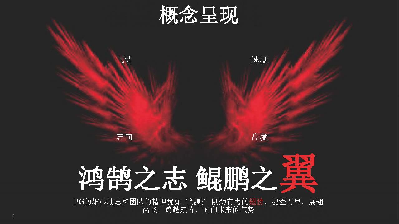 PG如同刚劲有力、睿智勃发的翅膀,恢宏博大,融合奋进,跨越巅峰,穿越云海,直达胜利巅峰的曙光。