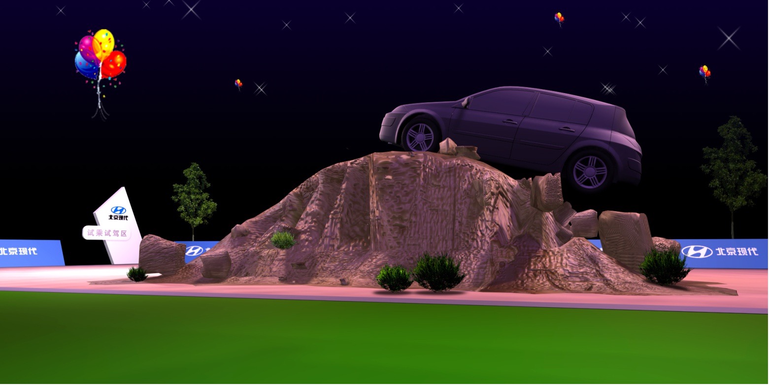 嘉尧设计提炼“流光梦影·自在由我”为发布会主题。主要分为室内会场、室外展示以及试驾三个区域。
