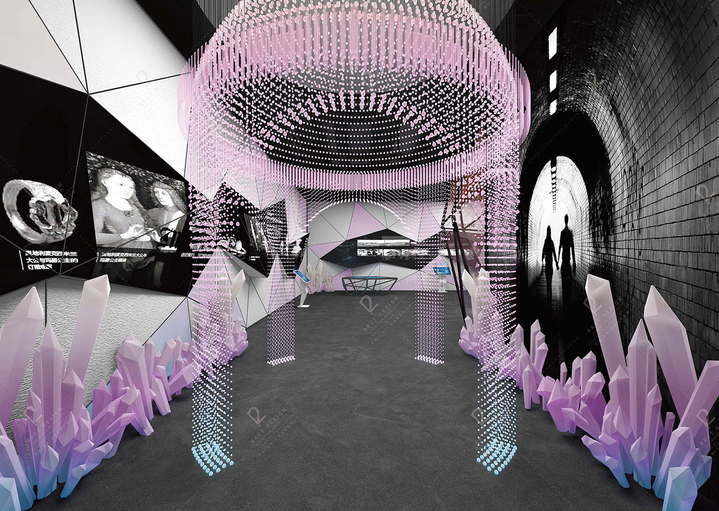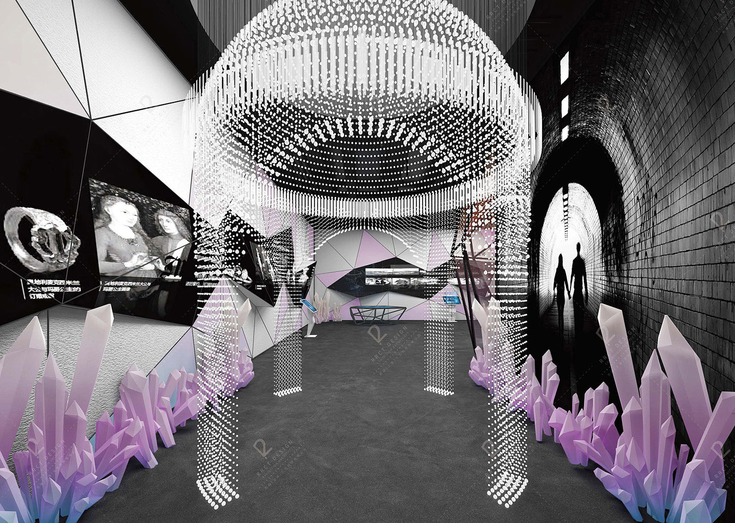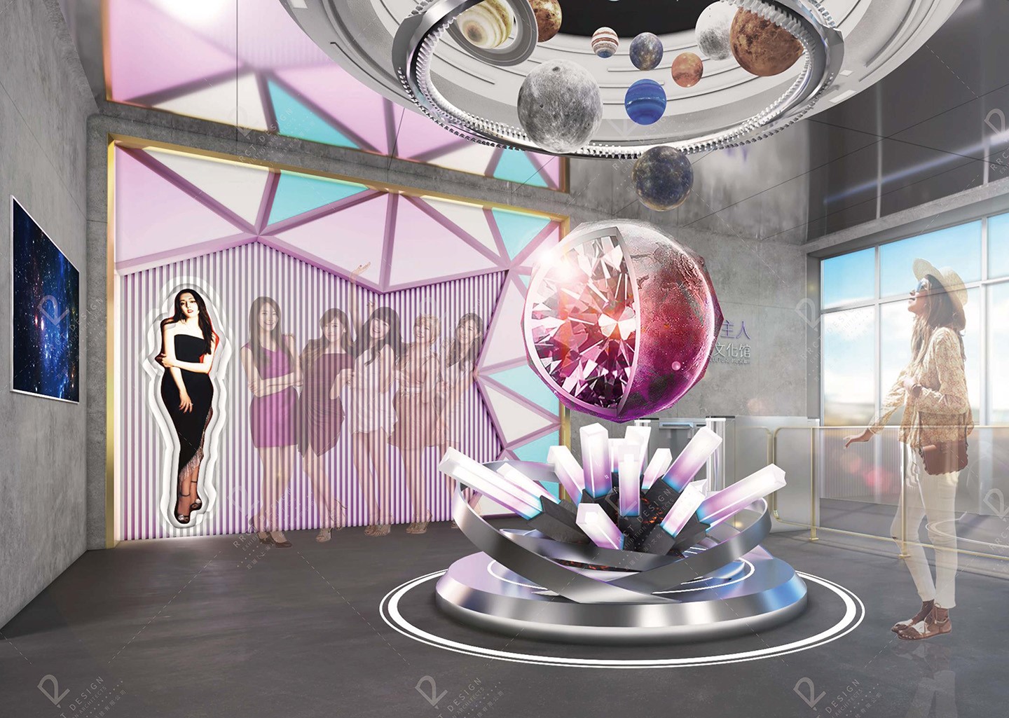 展厅分为克拉星球、稀世造化、奇迹之石、精工致美、璀璨创想五个部分,从吸引观众开始,到迎合务实属性、认可性价比,实现文化认同,认可品牌时尚属性,最终实现实现消费转化。